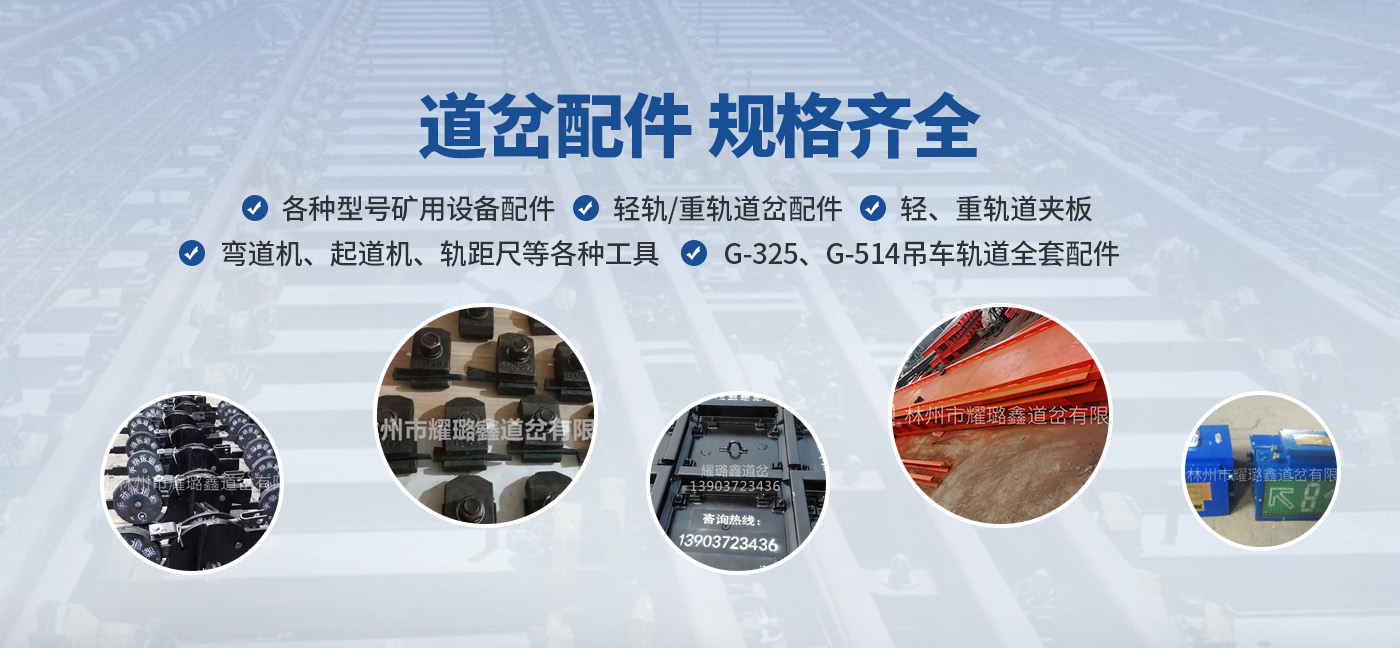 林州市耀璐鑫道岔有限公司位于風(fēng)景秀麗的太行山紅旗渠畔,東臨京廣鐵路、京珠高速,交通便捷、通訊方便。我公司加工各類國(guó)家標(biāo)準(zhǔn)鐵路配件,檢測(cè)手段齊全,擁有高科技理化檢驗(yàn)設(shè)備、溫控設(shè)備,達(dá)到產(chǎn)品質(zhì)量檢測(cè)要求。我公司主要加工經(jīng)營(yíng)以下產(chǎn)品:1、各種型號(hào)礦用設(shè)備及配件;2、各種型號(hào)輕軌道岔、重軌道岔及配件;3、各種型號(hào)輕、重軌道夾板;4、輕軌、重軌線路用彎道機(jī)、起道機(jī)、軌距尺等各種工具;5、G-325、G-514吊車軌道全套配件。耀璐鑫道岔秉承“質(zhì)量可靠、誠(chéng)信經(jīng)營(yíng)”的經(jīng)營(yíng)方針,以“優(yōu)質(zhì)服務(wù)、滿足顧客要求”為已任,嚴(yán)把質(zhì)量關(guān),道岔產(chǎn)品和鐵路配件遠(yuǎn)銷各大鋼廠、焦化廠、各大礦務(wù)局,受到新老客戶的好評(píng)與信賴!您的滿意,我的追求!林州市耀璐鑫道岔有限公司熱忱歡迎各地朋友真誠(chéng)合作,光臨指導(dǎo)!